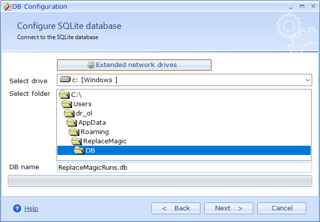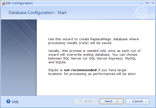 In case of SQLite is a bit different as SQLite is single file database that is coming with ReplaceMagic but, of course, you can create new SQLite database if needed: