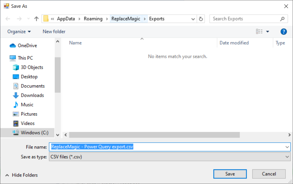 After choosing what type of report you want to make ReplaceMagic will open file dialog where you can choose location where you want to export document.