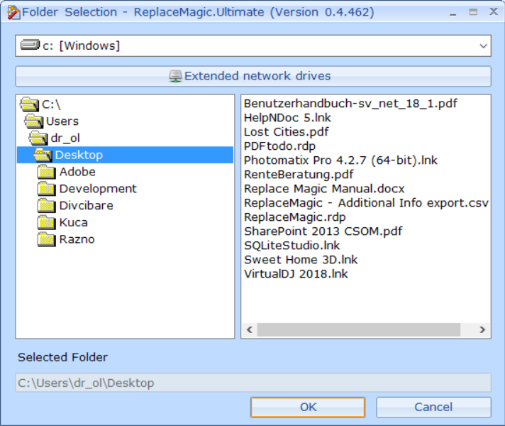 In case that you have network locations which are visible in Windows Explorer but they do not appear in drives drop-down you can try to find them over "Select extended network drives": For example, location named File (created with Add a network location):