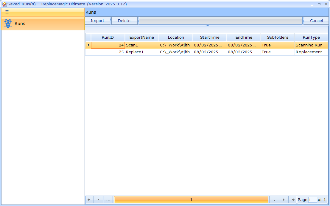 Where either double click on run or Run selection (single click) and then Import button will load saved data and, in case of SharePoint, create connection so that processing can start immediately.