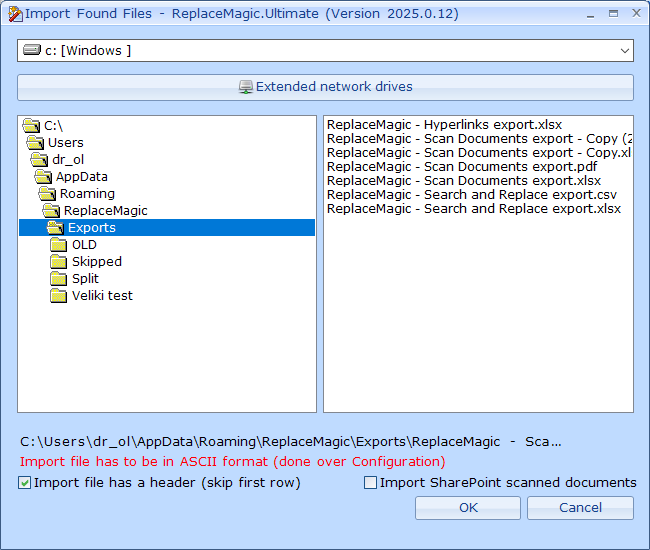 To import list click on "Import files" and navigate to location where you previously exported scan document results: