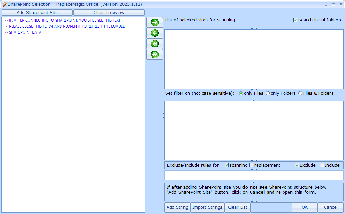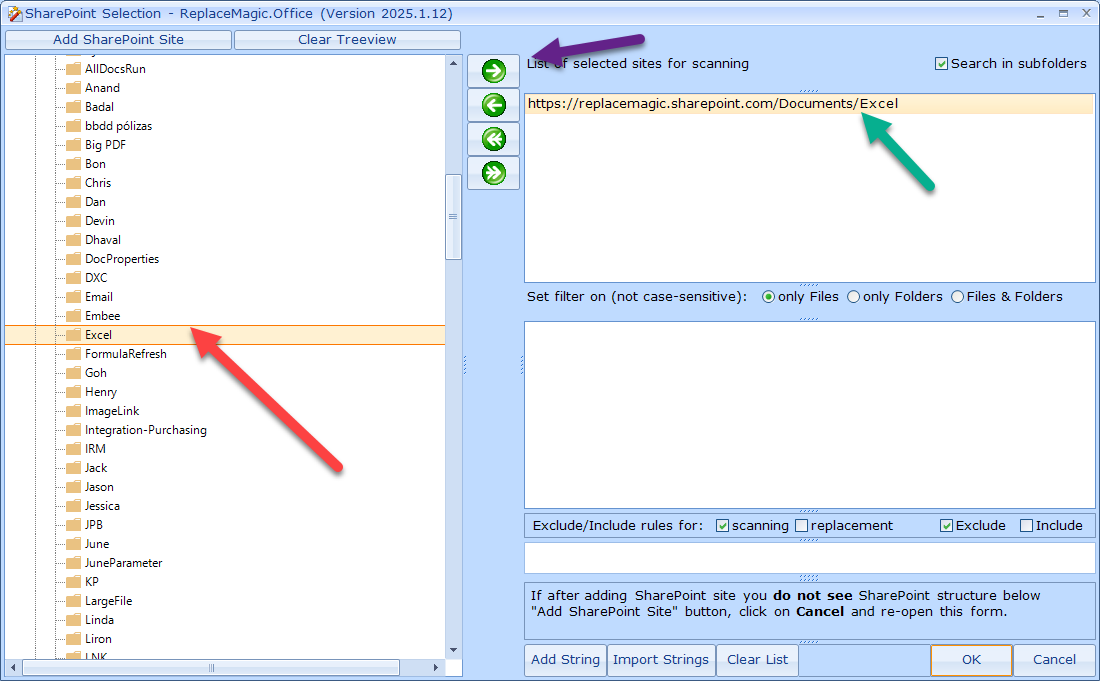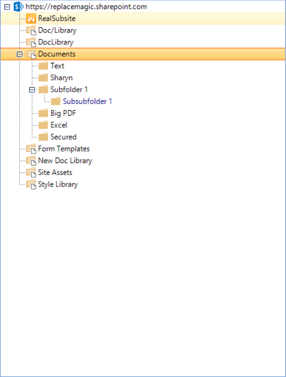 - "Search in subfolders" => which will instruct ReplaceMagic to scan documents also in sub folders / sub nodes of selected node and